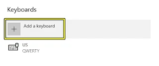 5- في الجزء الخاص بلوحات المفاتيح Keyboards نقوم بالضغط علي إضافة لوحة مفاتيح Add a Keyboard .